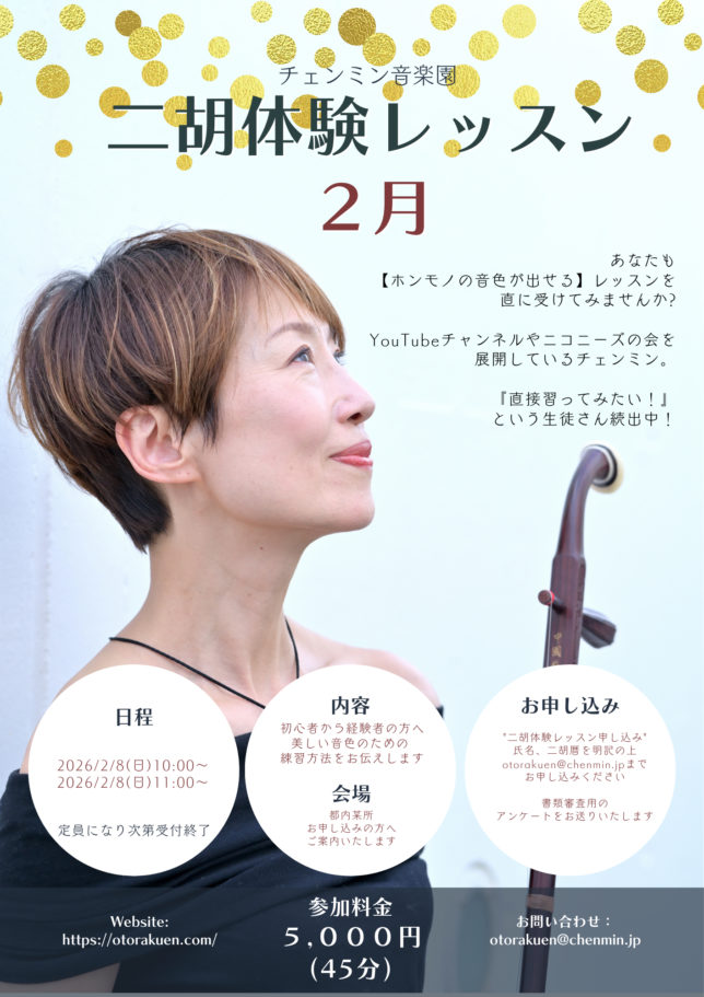 追加しました!二胡体験レッスンのご案内(2026年1月〜2月)