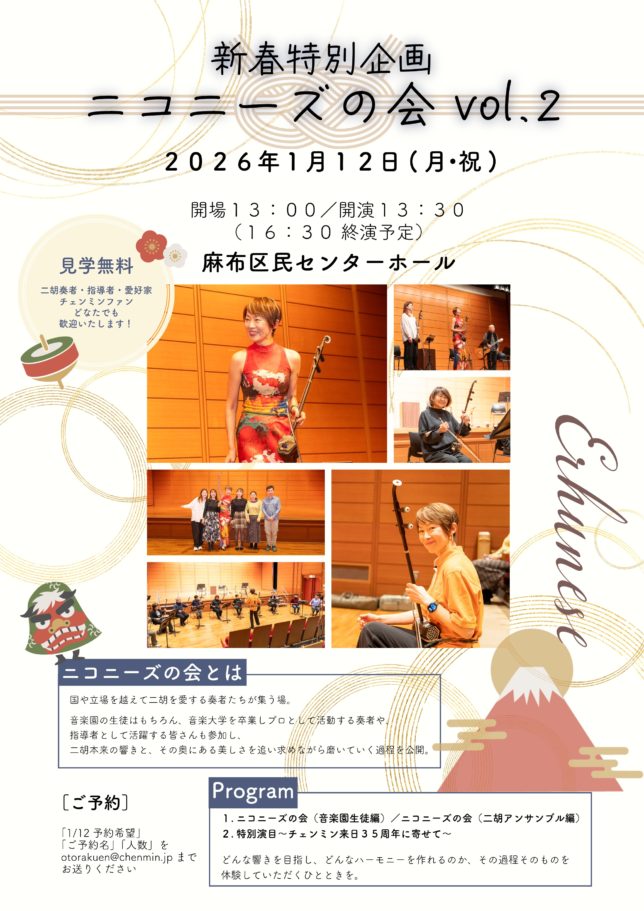 続きを読む →こんにちは、チェンミン音楽園スタッフです。 本日は、2025年新春企画!チェンミンミニコンサートのお知らせです…